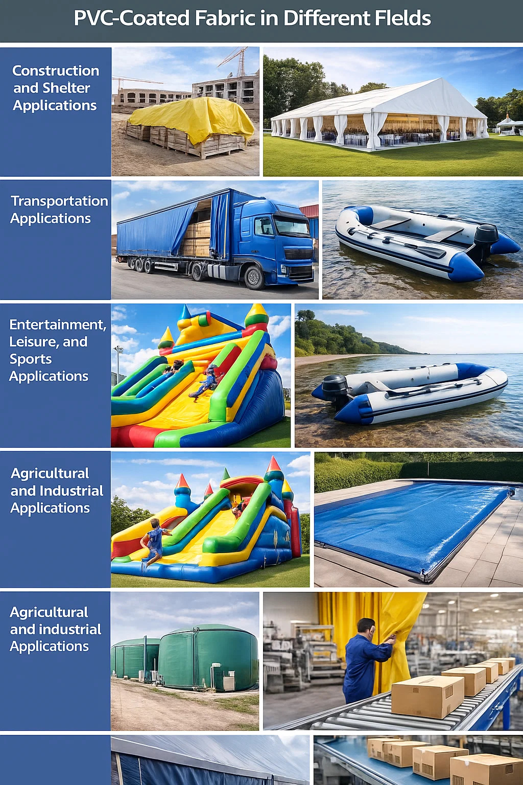 다양한 분야에서 PVC 코팅 직물의 주요 용도는 다음과 같습니다.