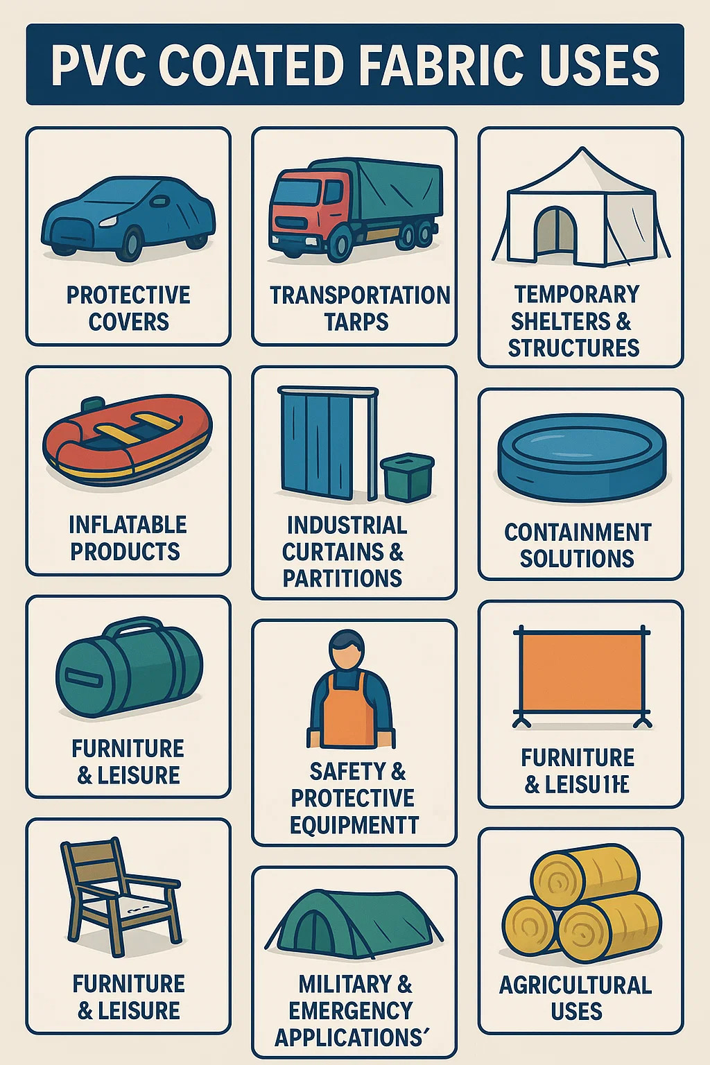 다음은 일반적인 용도에 대한 분석입니다. PVC 코팅 직물 , 실제 적용을 반영합니다.